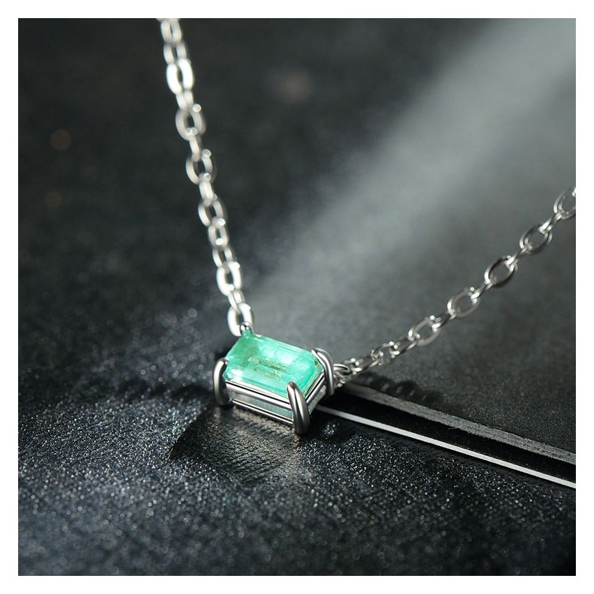 925 Silver Rhodium Plating Green Glass stone Minimalist Pendants 1.5g