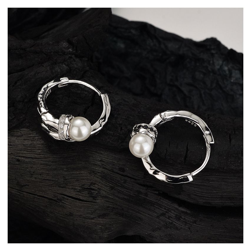 CLASSIC 925 Silver Rhodium Plating Pearls Earrings
