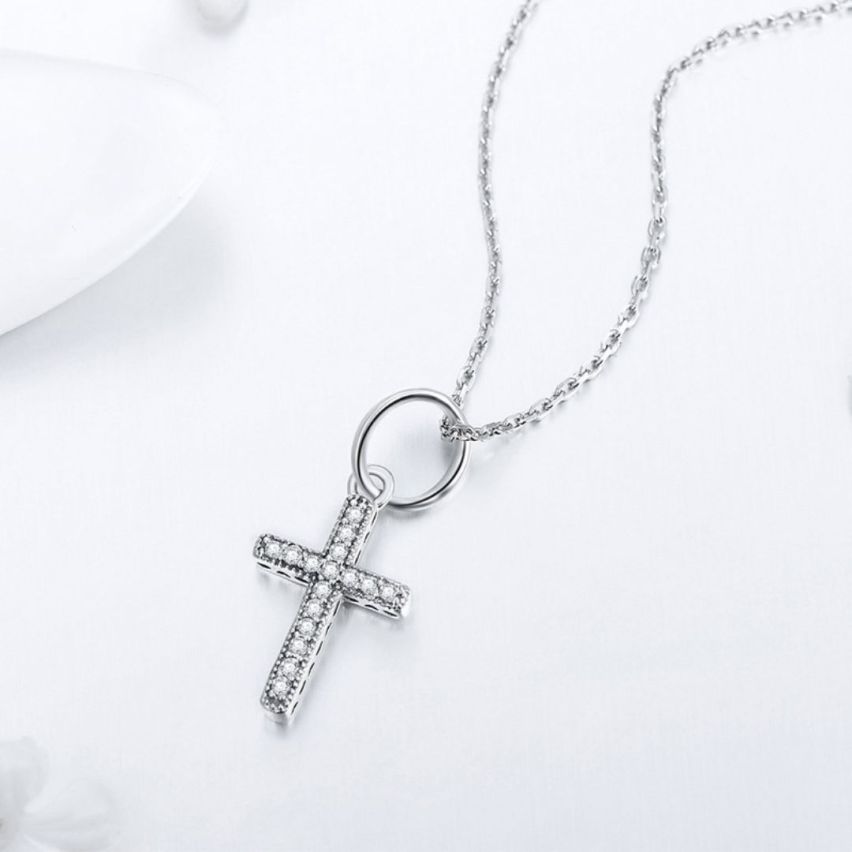 CLASSIC 925 Silver Rhodium Plating Zircon Cross Pendants 3.2g