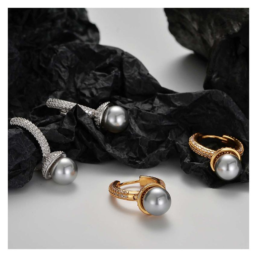 CLASSIC 925 Silver Shell Bead Grey Pearls Earrings