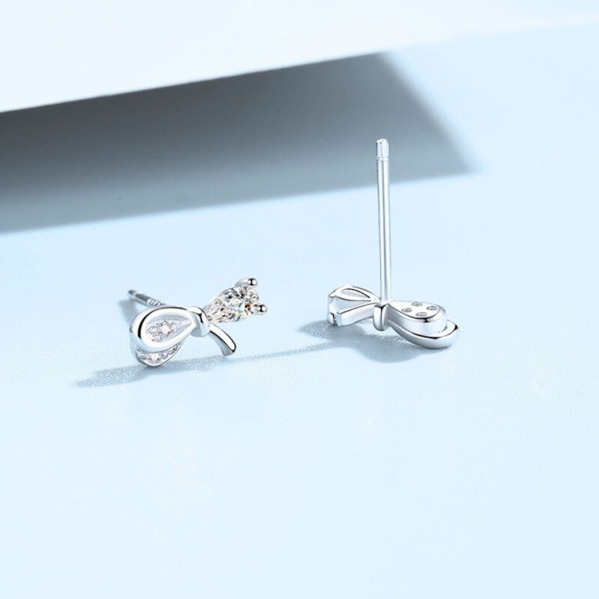 999 Silver Rhodium Plating Zircon Minimalist Earrings