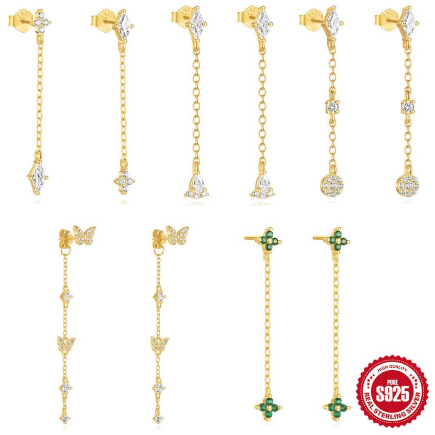 925 Silver 3 galvanization layers Gold Plating Zircon Minimalist Earrings