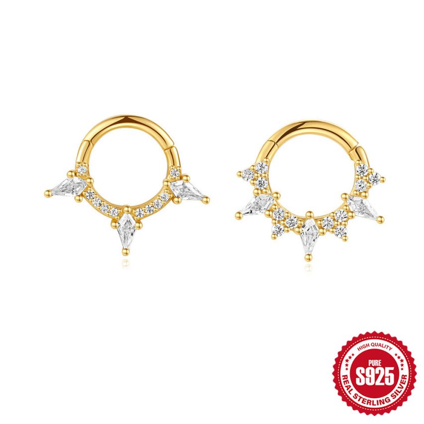 925 Silver 3 galvanization layers Gold Plating Zircon Piercing Earrings