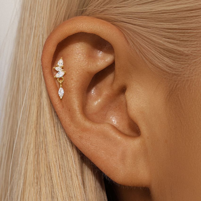 925 Silver 3 galvanization layers Gold Plating Zircon Piercing Earrings