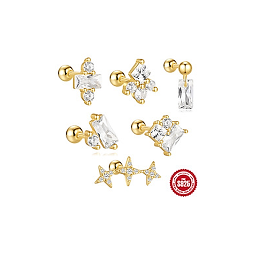 925 Silver 3 galvanization layers Zircon Piercing Earrings 0.53g 6.7x4.6mm
