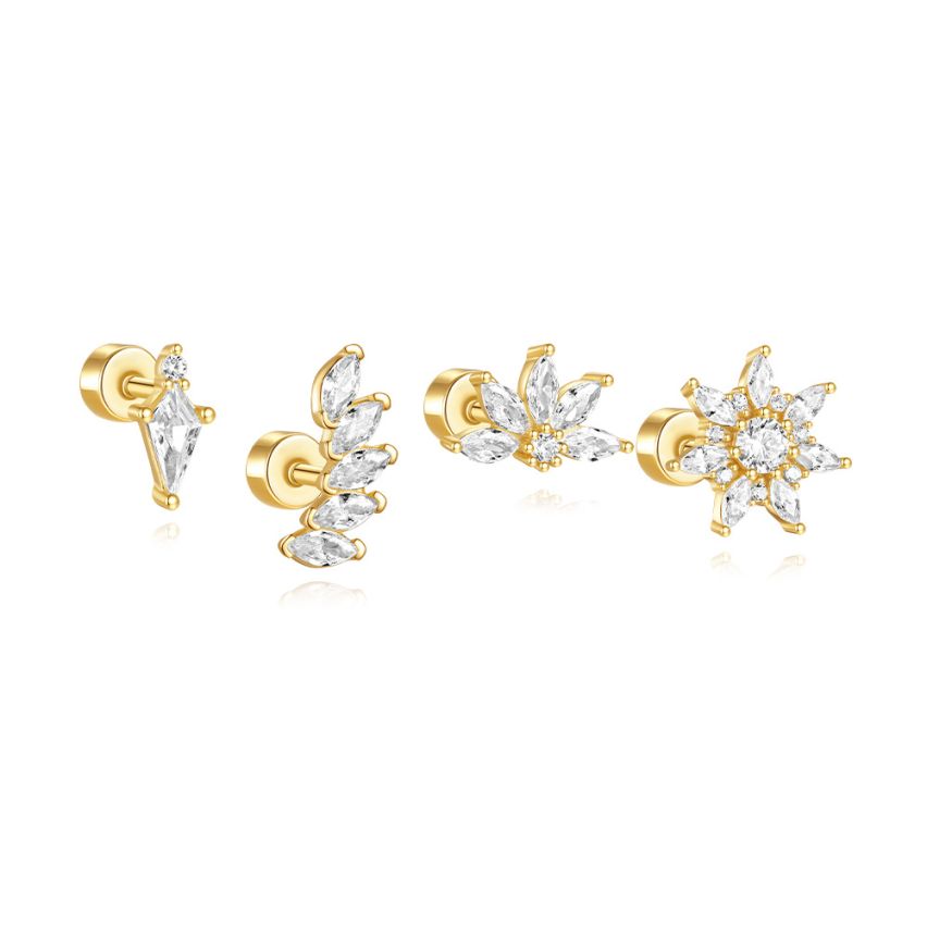 ESSENTIAL 925 Silver 3 galvanization layers Zircon Piercing Earrings