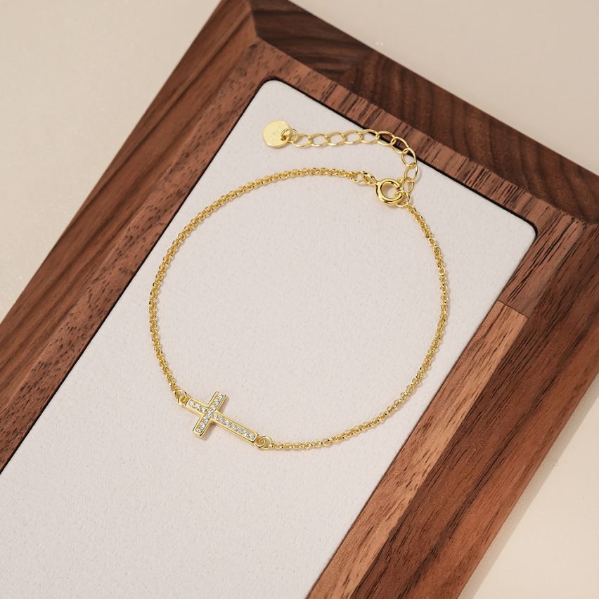 ESSENTIAL 925 Silver Gold Plating Zircon Cross Bracelets