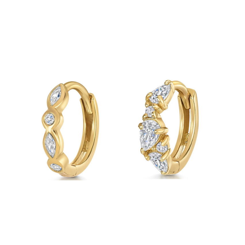 ESSENTIAL 925 Silver Gold Plating Zircon Hoop Earrings 0.75g