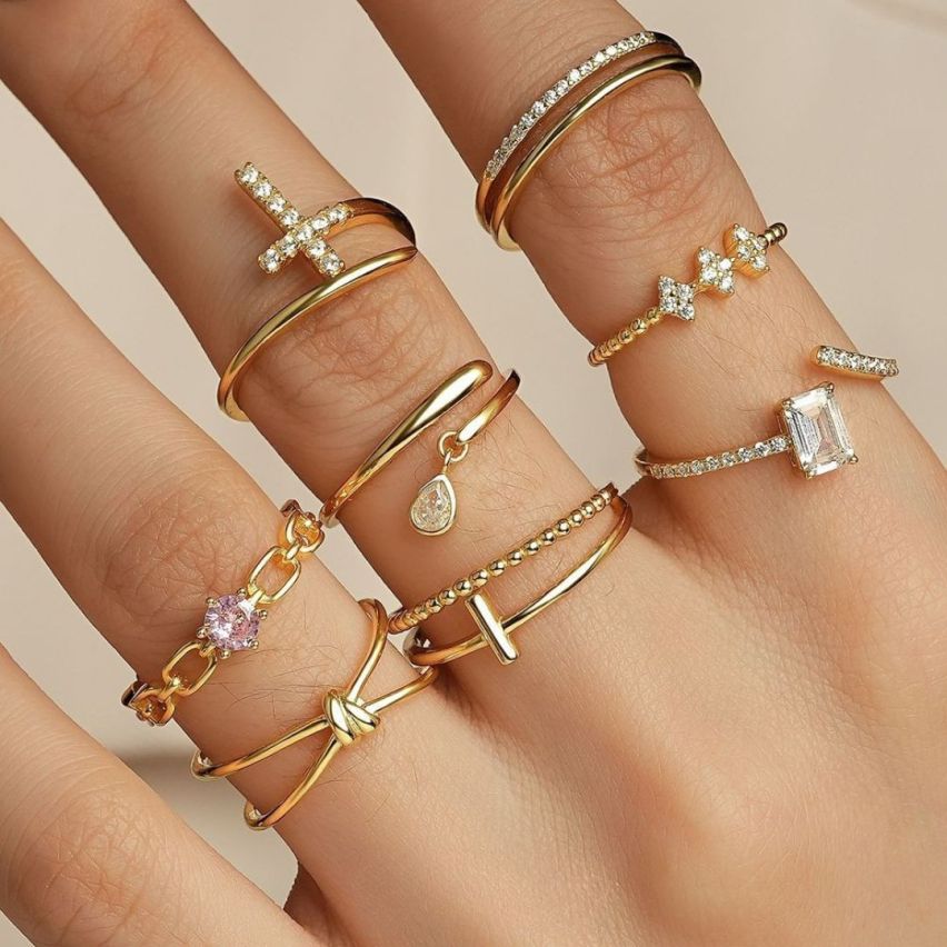 925 Silver Gold Plating Zircon Minimalist Rings EU54 - ES14 - US7,00