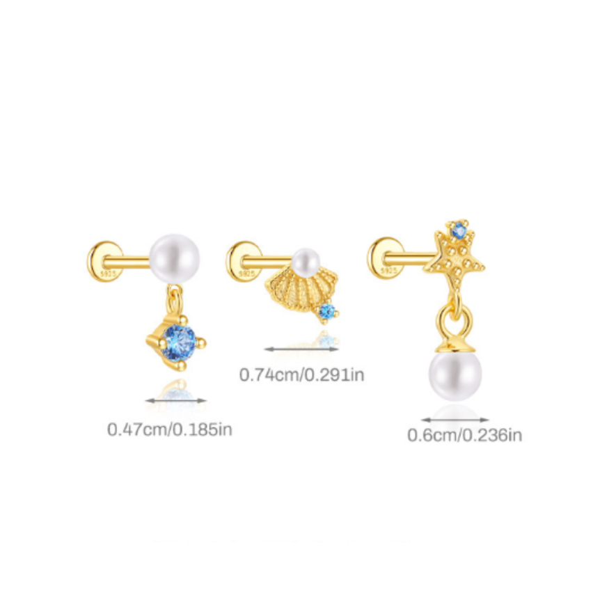 ESSENTIAL 925 Silver Gold Plating Zircon Piercing Earrings