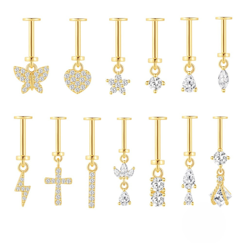 925 Silver Gold Plating Zircon Piercing Earrings 0.45g