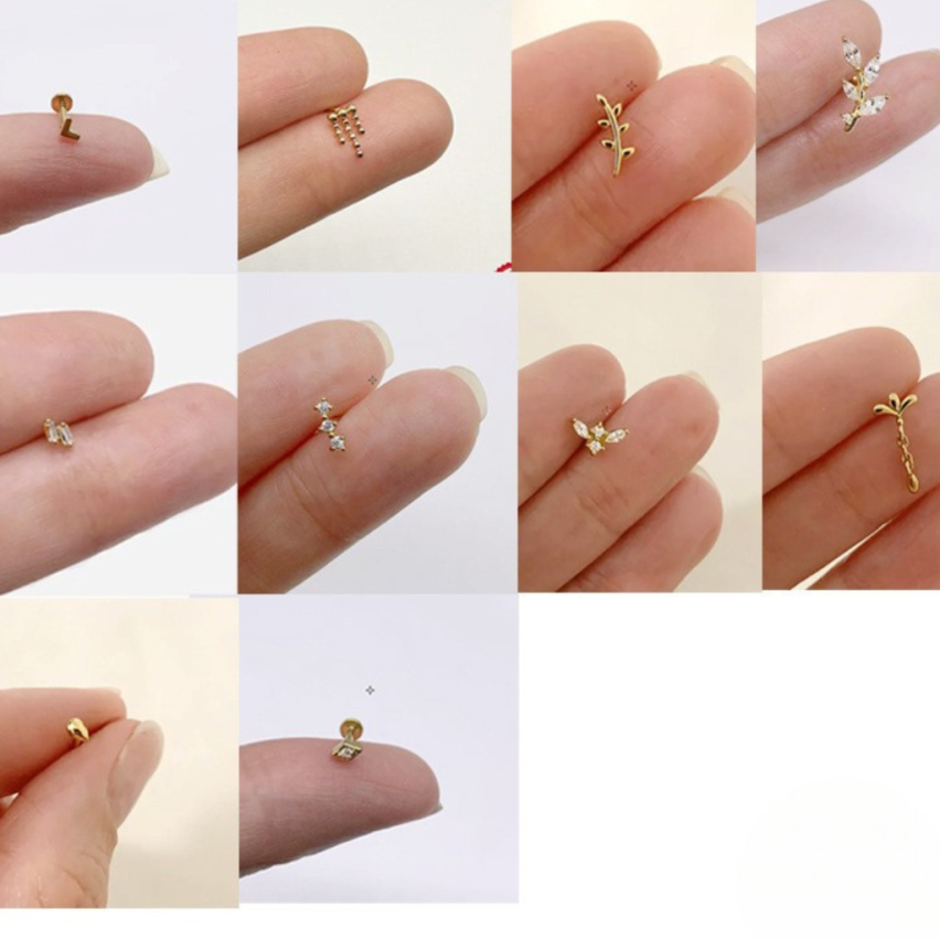 ESSENTIAL 925 Silver Gold Plating Zircon Piercing Earrings 0.56g