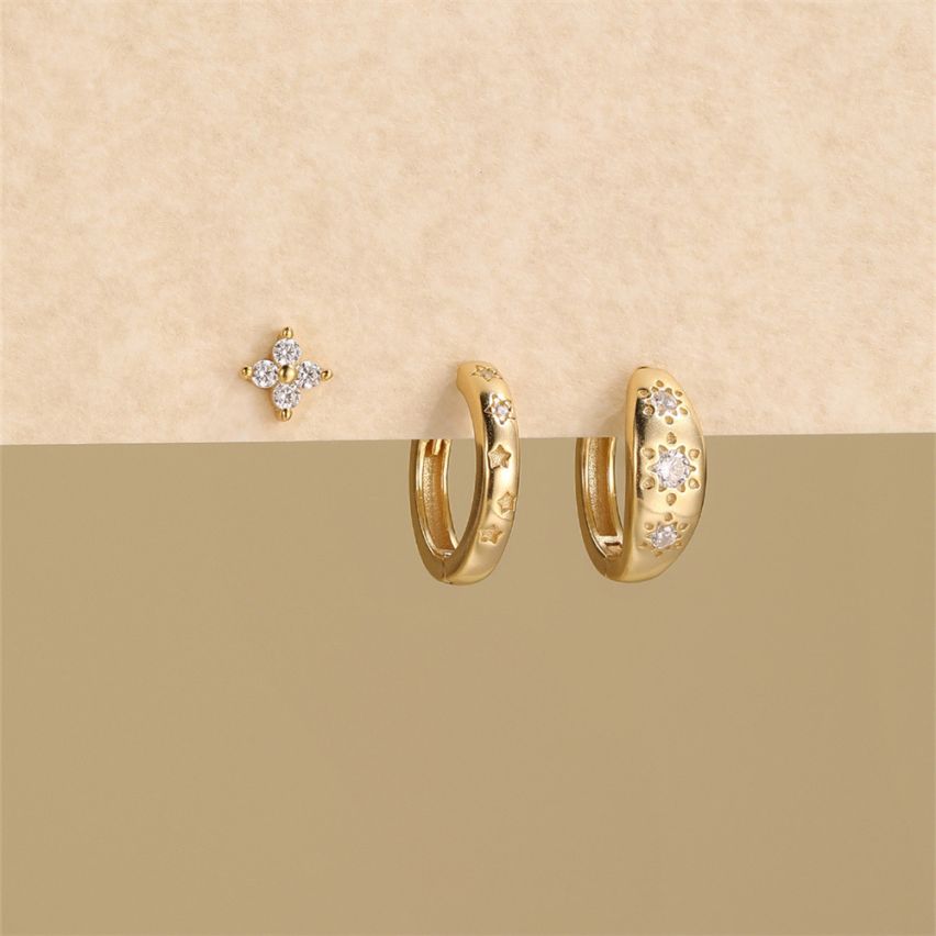 ESSENTIAL 925 Silver Gold Plating Zircon Sets Earrings