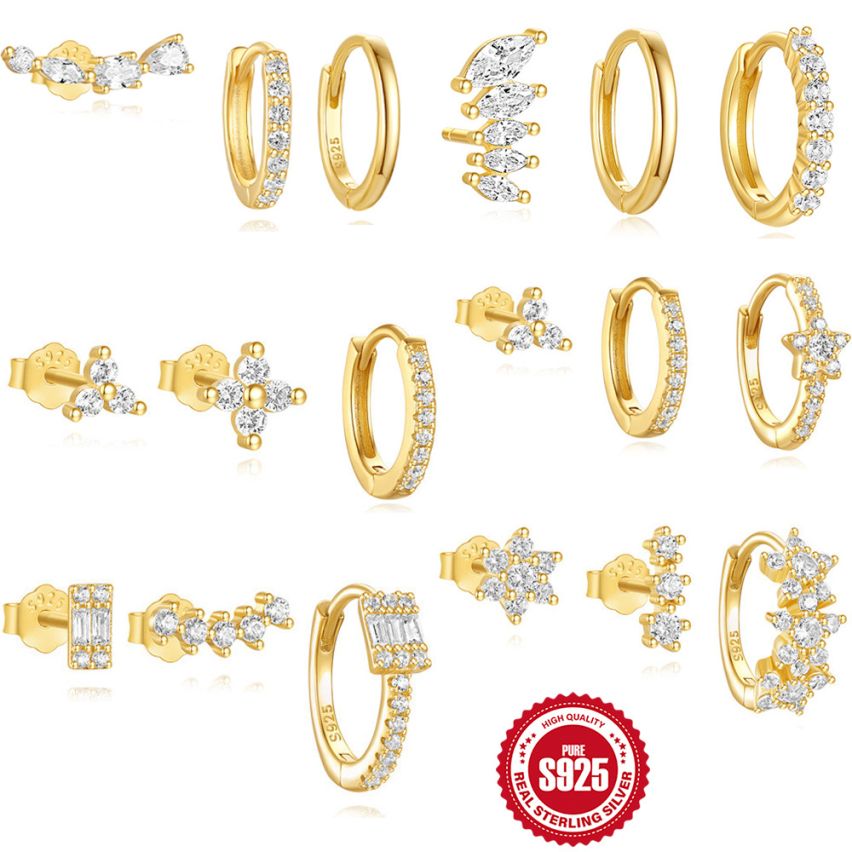 ESSENTIAL 925 Silver Gold Plating Zircon Sets Earrings