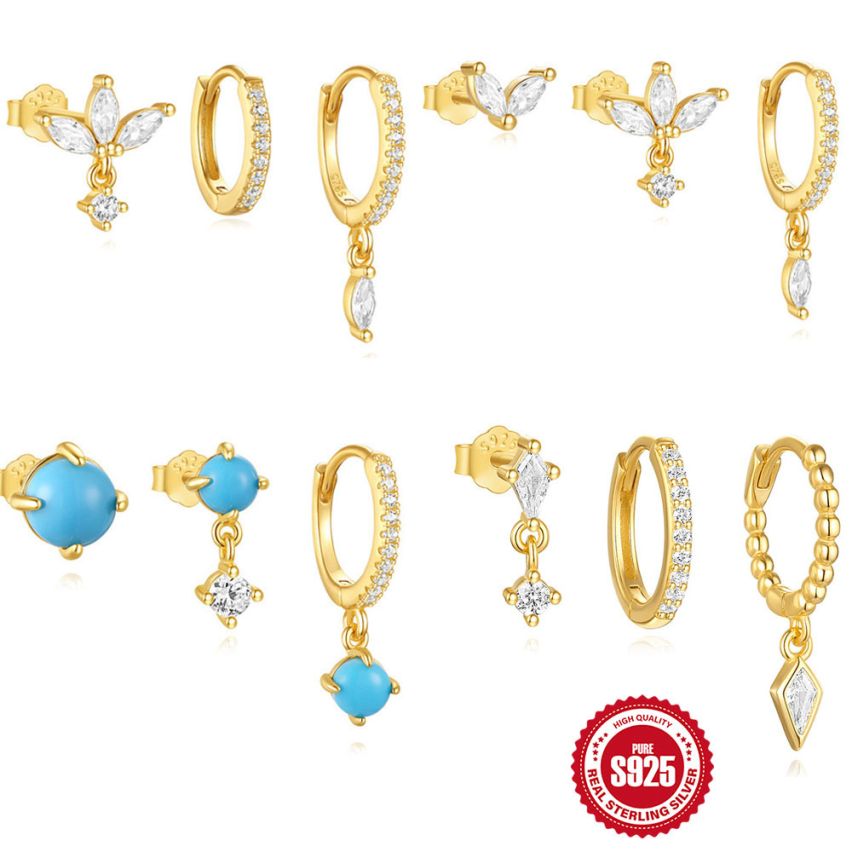 925 Silver 3 galvanization layers Gold Plating Zircon Sets Earrings 1.8g