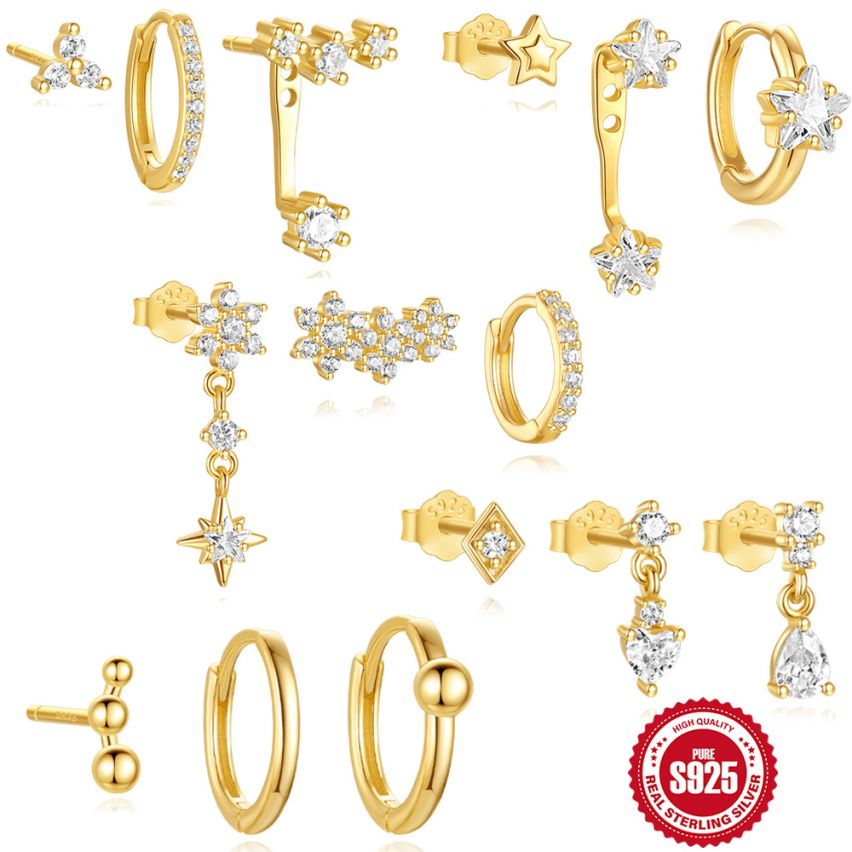 ESSENTIAL 925 Silver Gold Plating Zircon Sets Earrings