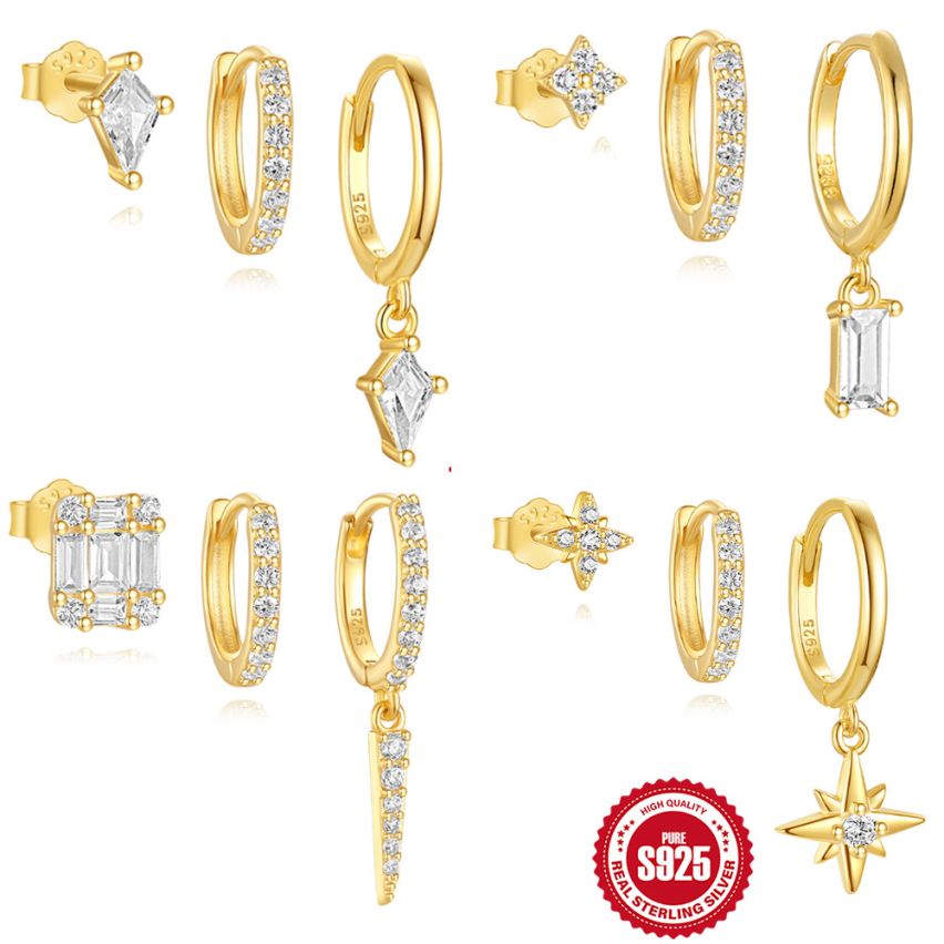 ESSENTIAL 925 Silver Gold Plating Zircon Sets Earrings