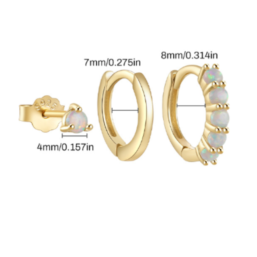 925 Silver Gold Plating Zircon Sets Earrings 1.4g