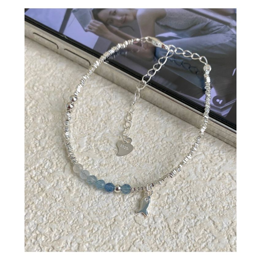 ESSENTIAL 925 Silver Rhodium Plating Aquamarine Beads Bracelets