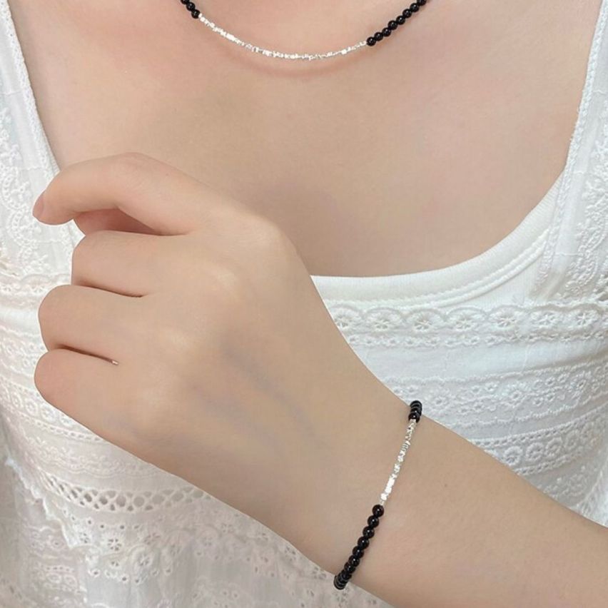 ESSENTIAL 925 Silver Rhodium Plating Black Beads Bracelets
