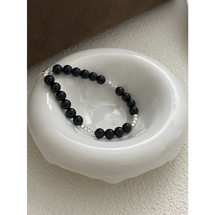 ESSENTIAL 925 Silver Rhodium Plating Black Beads Bracelets