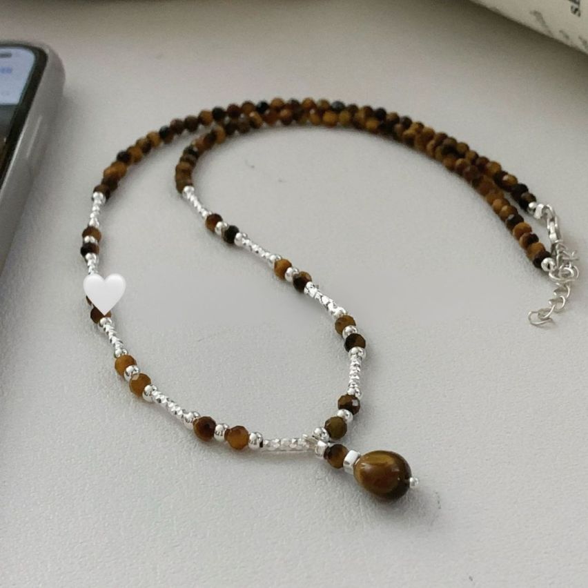 ESSENTIAL 925 Silver Rhodium Plating Brown Beads Pendants