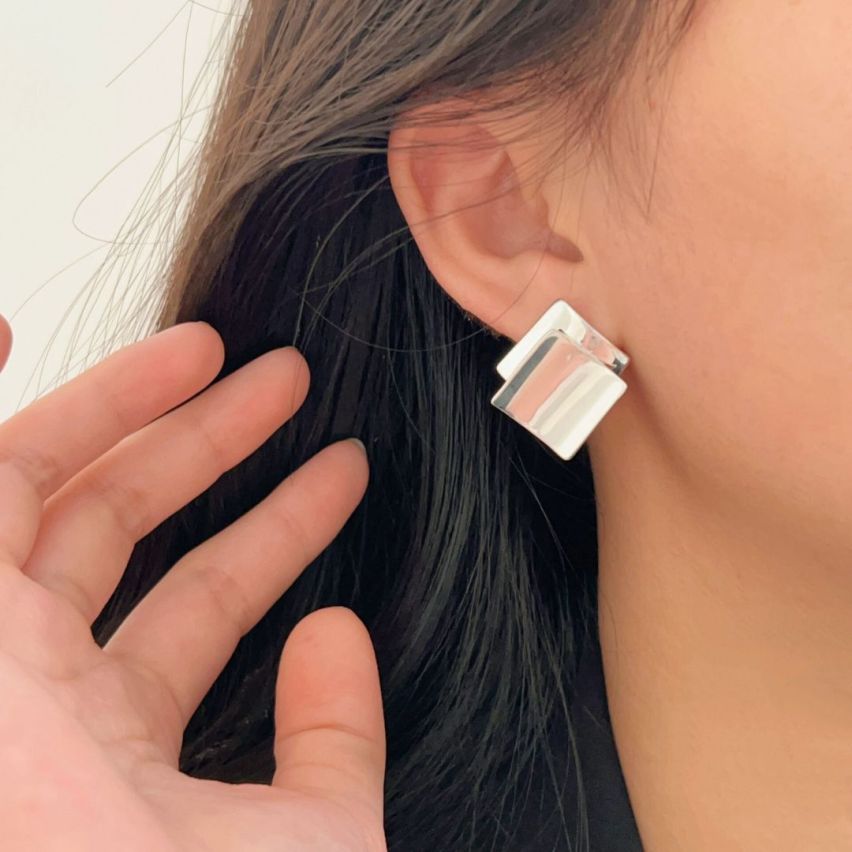 ESSENTIAL 925 Silver Rhodium Plating Geometric Earrings