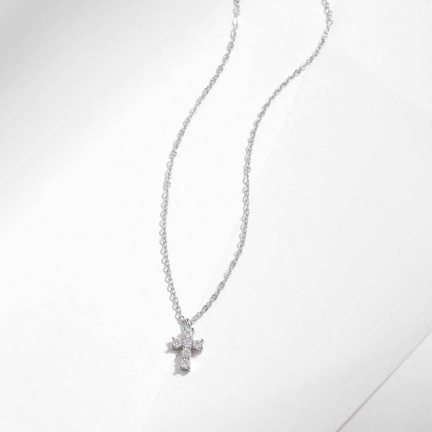 ESSENTIAL 925 Silver Rhodium Plating GRA Moissanite-Diamond certificate Cross Pendants