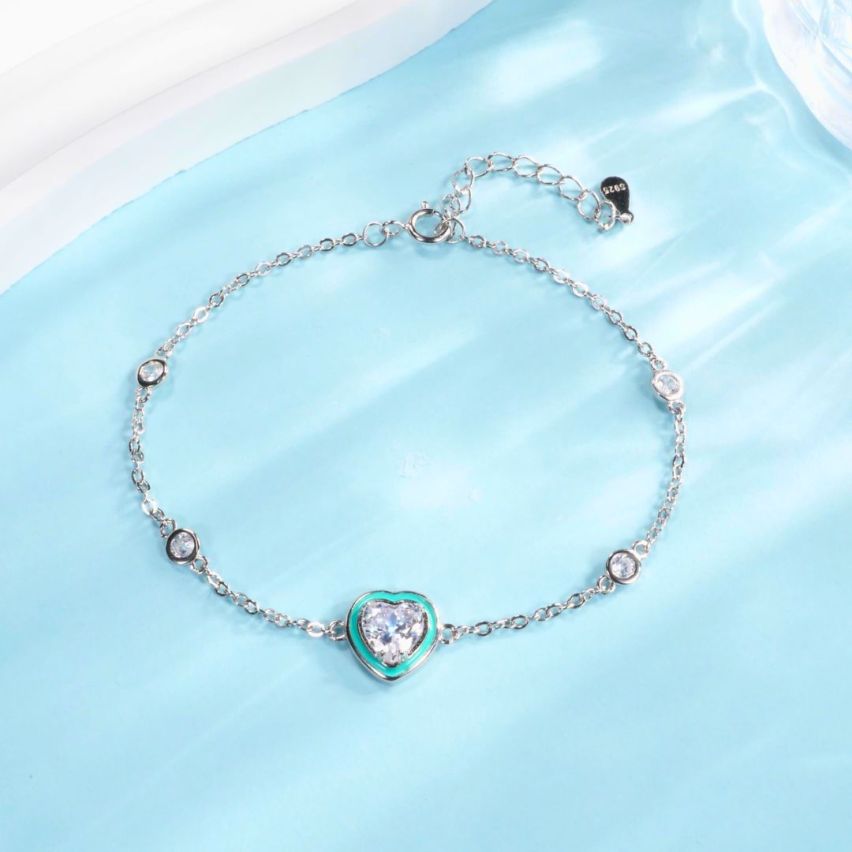 ESSENTIAL 925 Silver Rhodium Plating GRA Moissanite-Diamond certificate Lake blue Minimalist Bracelets