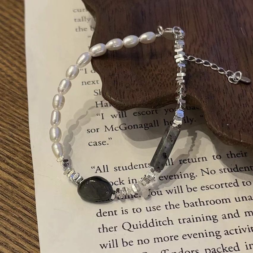 ESSENTIAL 925 Silver Rhodium Plating Pearl Black Beads Bracelets