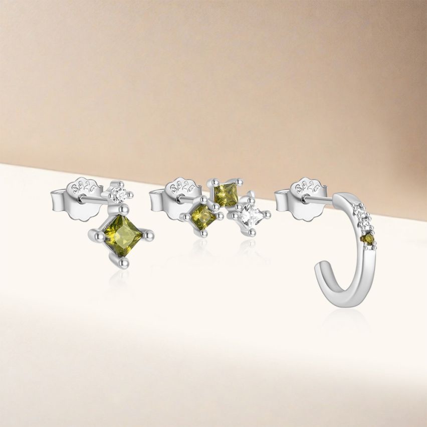 925 Silver Rhodium Plating Olive green Zircon Sets Earrings 1.2g