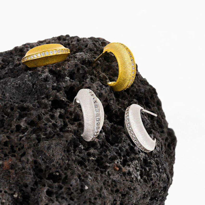 ESSENTIAL 925 Silver Zircon Texture Earrings