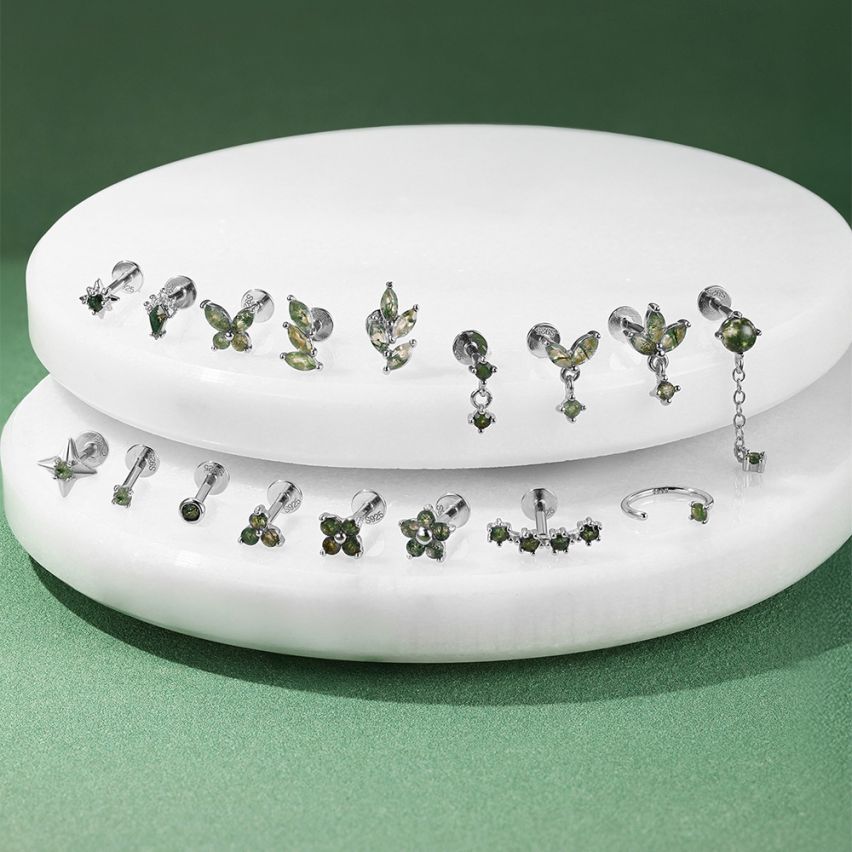925 Silver New Olive green Agate Stud Earrings 0.36g
