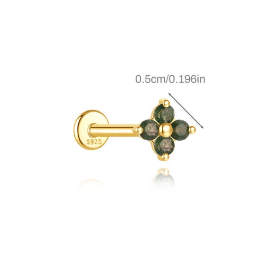 925 Silver New Olive green Agate Stud Earrings 0.43g