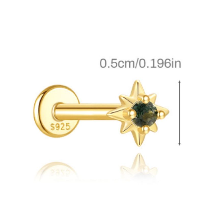 925 Silver New Olive green Agate Stud Earrings 0.37g
