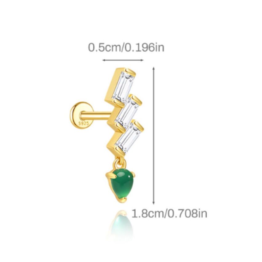 925 Silver New Gold Plating Green Zircon Stud Earrings 0.97g