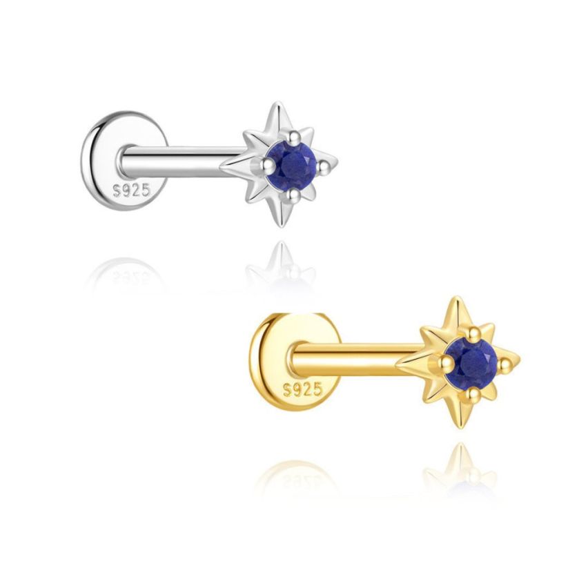 925 Silver New Gold Plating Blue marine Lapis lazuli Stud Earrings 0.34g