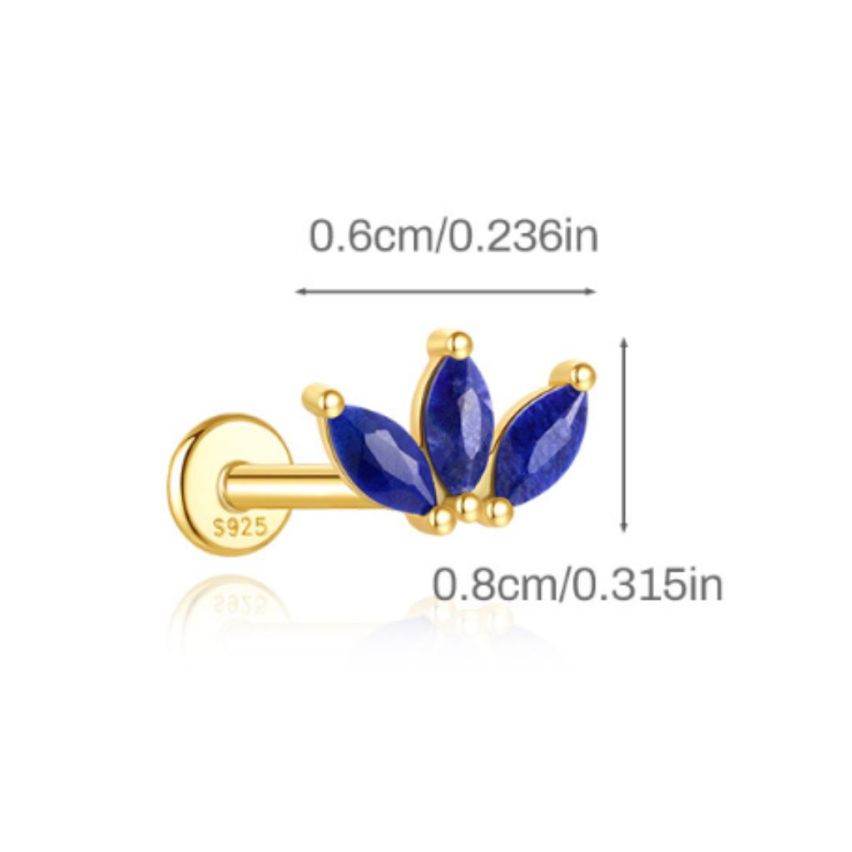 925 Silver New Gold Plating Blue marine Lapis lazuli Stud Earrings 0.46g