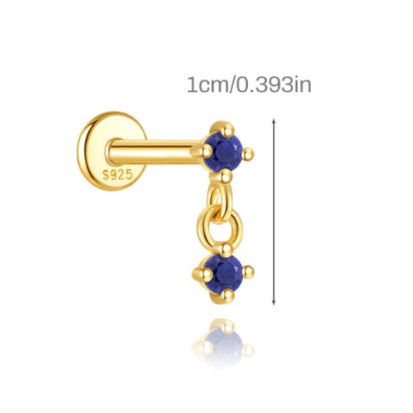 925 Silver New Gold Plating Blue marine Lapis lazuli Stud Earrings 0.48g