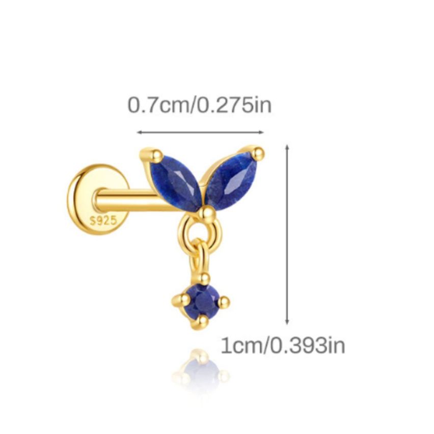 925 Silver New Gold Plating Blue marine Lapis lazuli Stud Earrings 0.67g