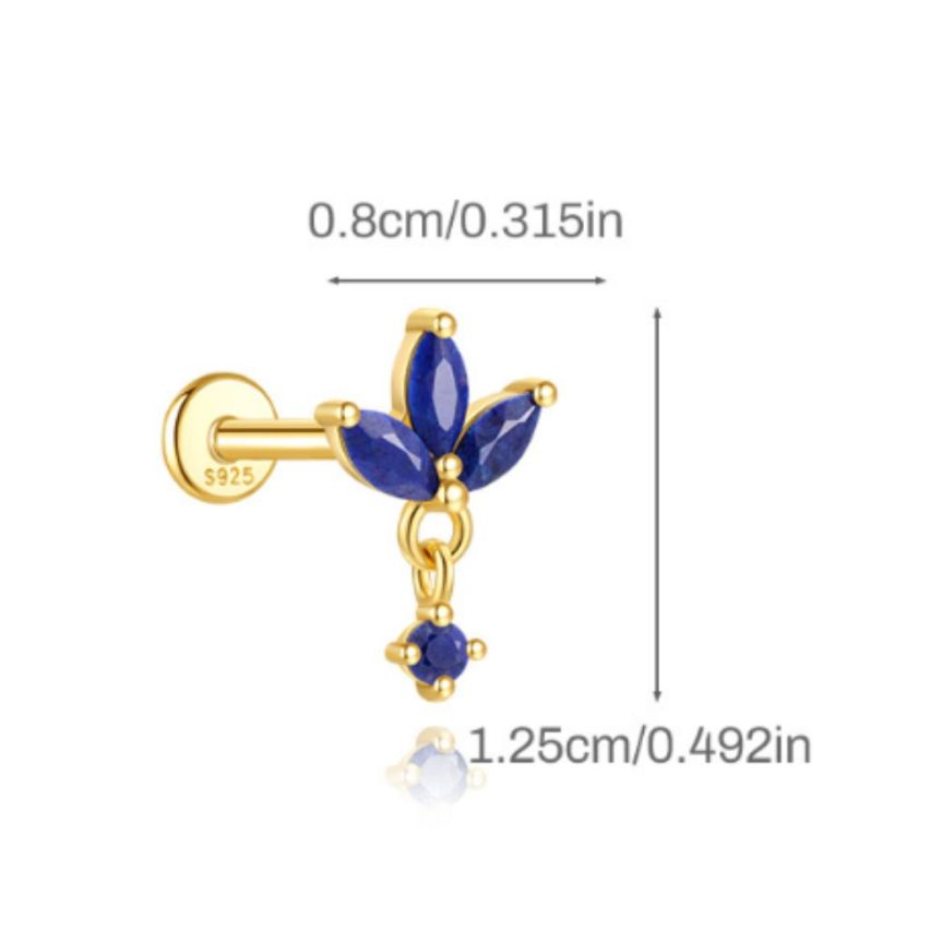 925 Silver New Blue marine Lapis lazuli Stud Earrings 0.67g