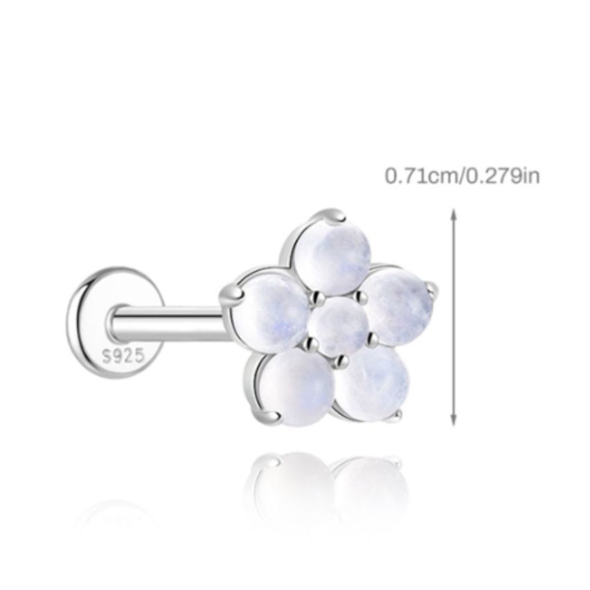 925 Silver New Rhodium Plating Moon Stone Stud Earrings 0.53g